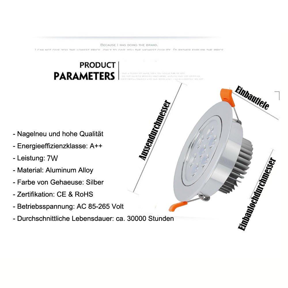 Wolketon® 10 Set 7W LED Einbauleuchte Einbau Strahler LED Strahler Beleuchtung Kaltweiß [Energieklasse A++]