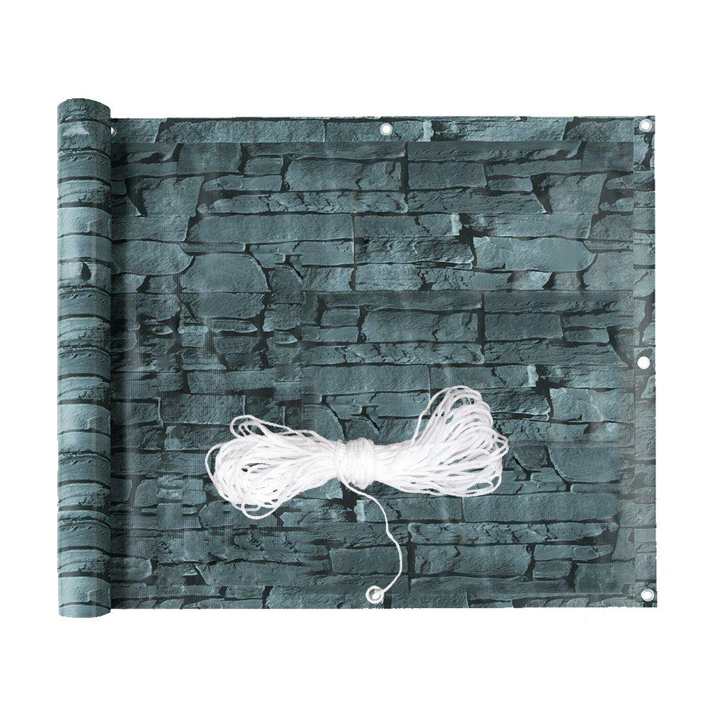 Perfekter Sichtschutz - Unsere Balkonumspannung eignet sich perfekt als Sichtschutz vor neugierigen Blinken. Genießen Sie die Freiheit der Natur ohne auf Ihre Privatsphäre zu verzichten.Einfache Montage - Durch die mitgelieferte reißfeste 24m Kordel und von oben nach unten, von links nach rechts eingenähte Alu-Ösen ist Schrauben und Bohren unnötig. Sie können den Balkonsichtschutz schon nach wenigen Minuten an jedem Geländer befestigen. Länge Kordel: 24 m, Anzahl Ösen: 28.Stablies Material - Hergestellt aus PVC und Polyster, mit einer Grammatur von 450 g/m² ist diese Balkonblende sehr stabil und langlebig. Das Material selbst ist reißfest, witterungsbeständig sowie wasser- und schmutz-abweisend, dadurch sehr pflegeleicht. Bis zu 70°per Hand waschbar.Vielseitige Verwendungen - Diese Balkonverkleidung ist auch ideale Schutz gegen Wind, Regen und UV. Es blockiert bis zu 98% UV-Strahlung. Die beidseitig bedruckte Blende dient sich nicht nur als Blickschutz als auch Dekoration. PERFEKT für Balkon, Gartenzaun, Terrasse usw.Variante - Wir bieten 2 Größe: 0.9 x 6M. Der Balkonbespannung ist horizontal schneidbar(wegen der Schönheit aber nicht empfohlen). Sie erhalten von uns 5x Farben: Stein-Optik.Vorteile:
