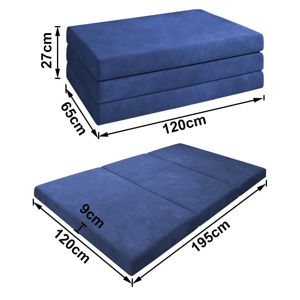 Diese Matratze Sehr leicht zu transportieren und platzsparend. 3-fach faltbar. Abnehmbarer Bezug mit Reißverschluss.Erweiterte Größe: (LxBxH) 195x120x7cm.Gefaltete Größe:(LxBxH) 120x65x21cm.