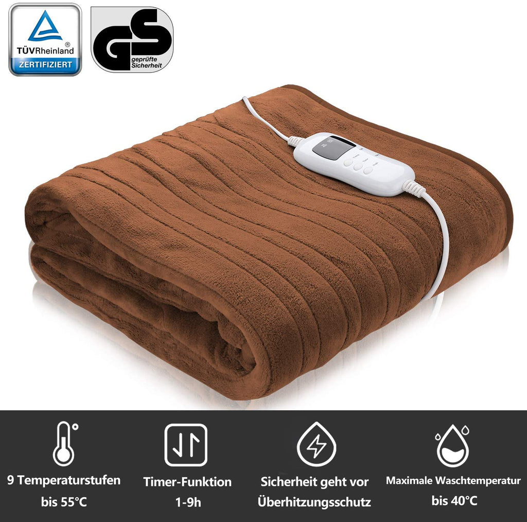 Wolketon Braun Kuschelheizdecke Heizdecke 9 Leistungsstufen Timer Funktion