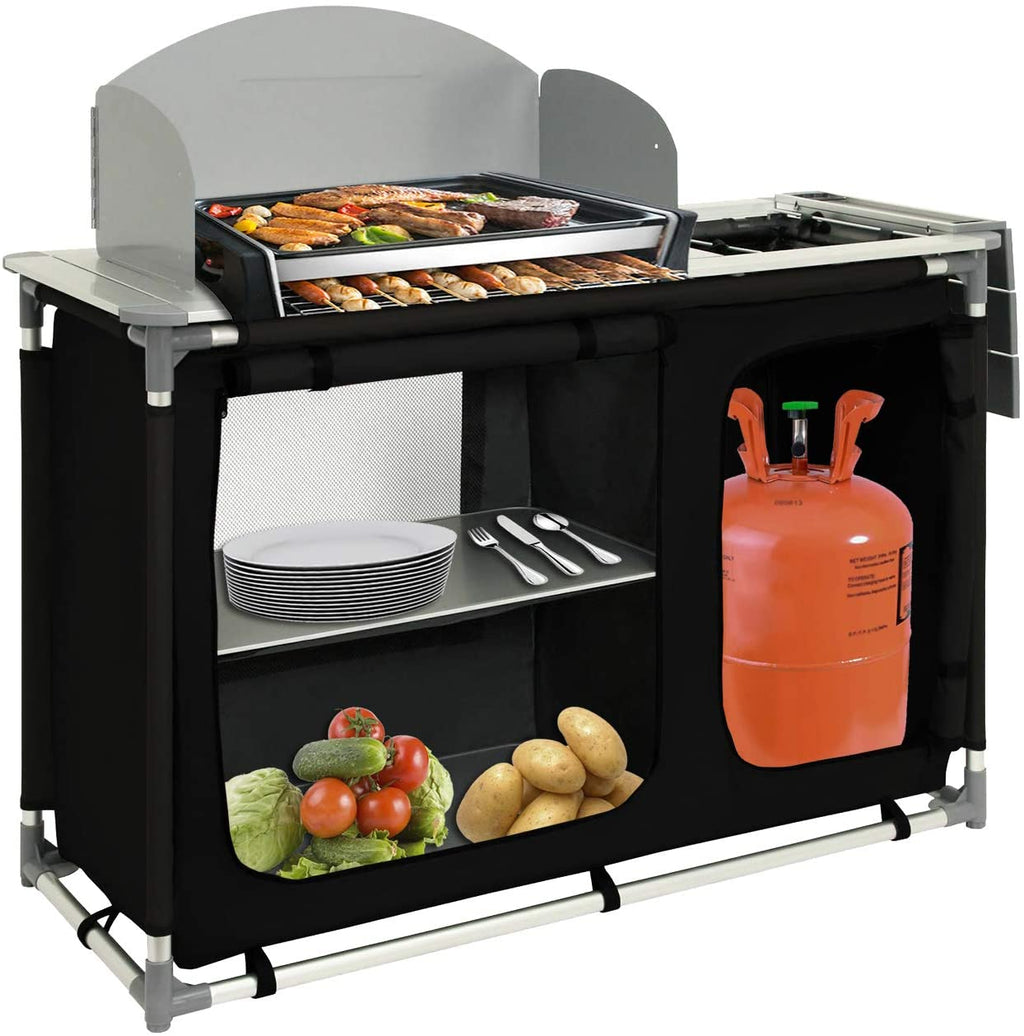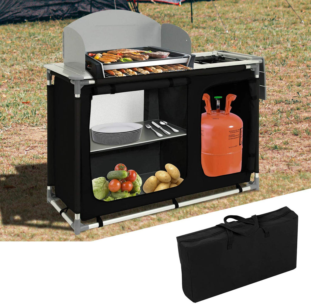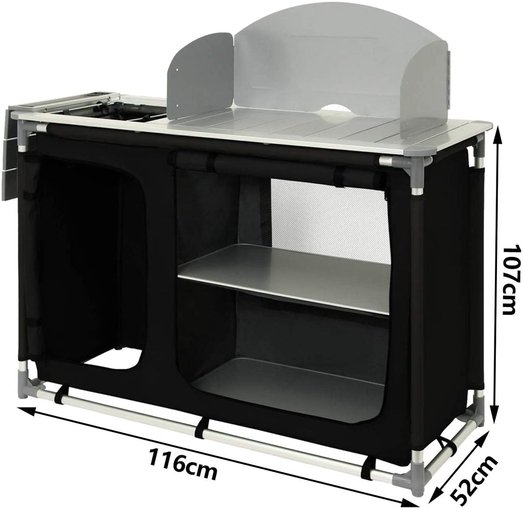 Wolketon Campingküche mit Aluminiumgestell, Spritzschutz und Tragetasche,Outdoor Campingschrank Windschutz