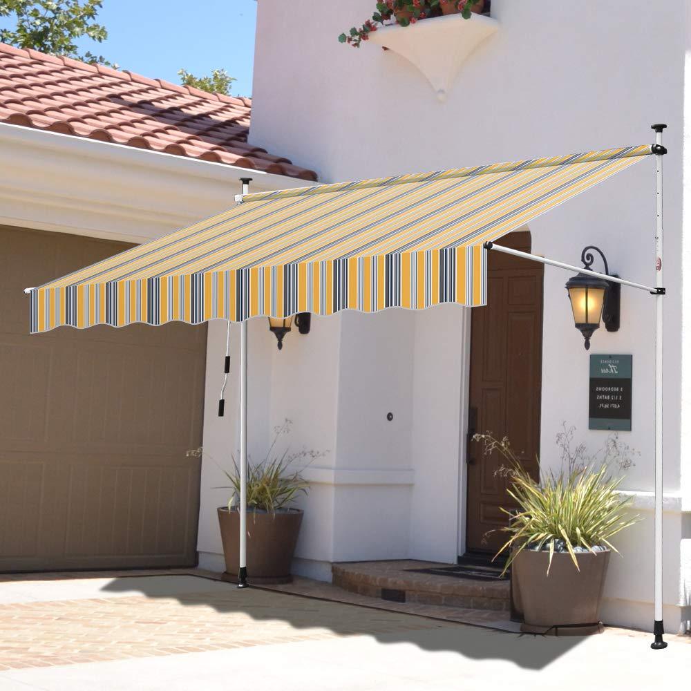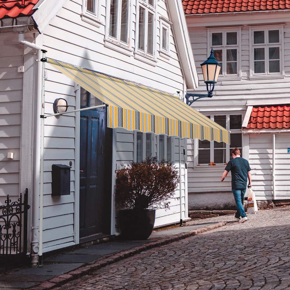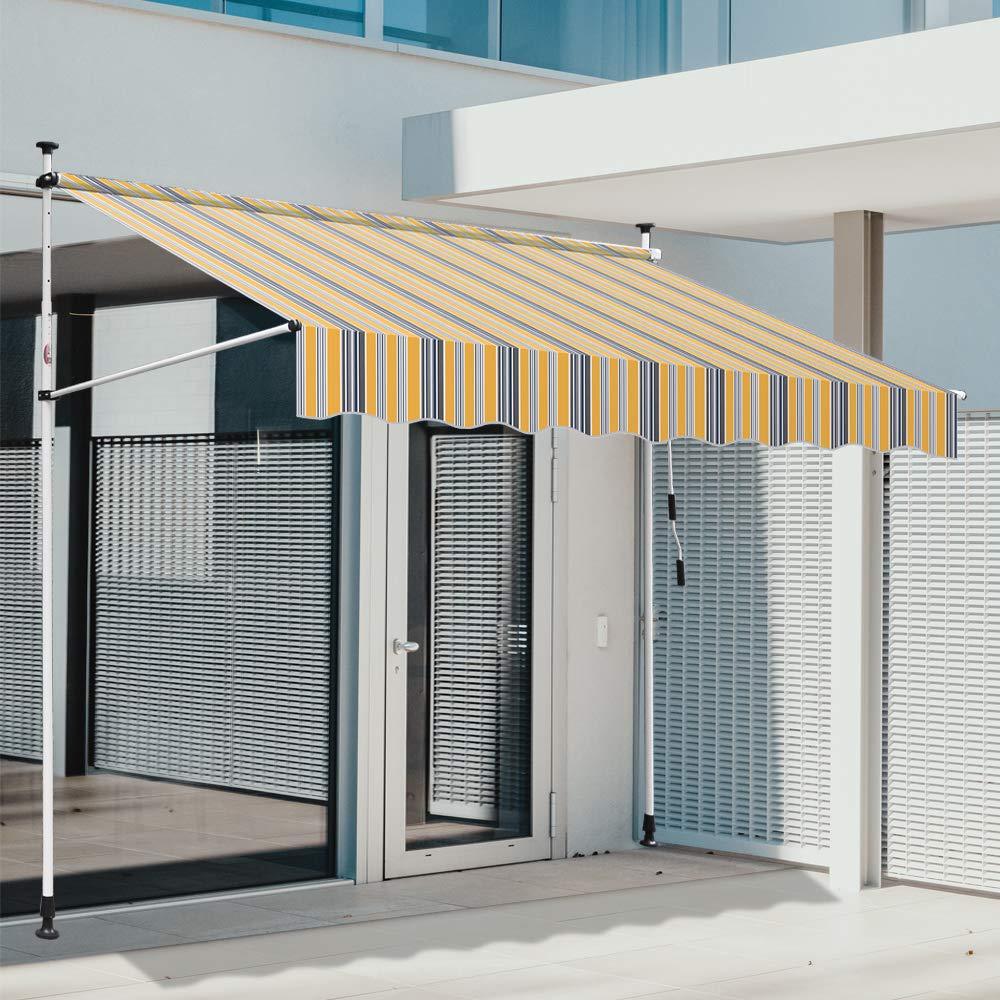 Diese manuell einziehbare Markise kann vor einem Fenster, auf einer Terrasse, einem Balkon oder in einem Garten installiert werden. Diese wasserdichte und schmutzabweisende Markise besteht aus hochwertigem Polyester mit PU-Beschichtung, es ist UV- und witterungsbeständig. Der robuste Stahlrahmen sorgt für Stabilität und Langlebigkeit der Markise. Der Sonnensegel kann abmontiert und gereinigt werden. Dieses Produkt kann nicht nur als allgemeine Markise verwendet werden, sondern auch zur vollständigen Abdeckung des Fensters. Durch die Kurbel kann die Markise von Hand ein- oder ausgefahren werden, dabei können Sie die Höhe und Neigungswinkel des Sonnenschutzes einstellen. Die Kurbel lässt sich auf der linken oder rechten Seite für die bequeme Verwendung installieren.