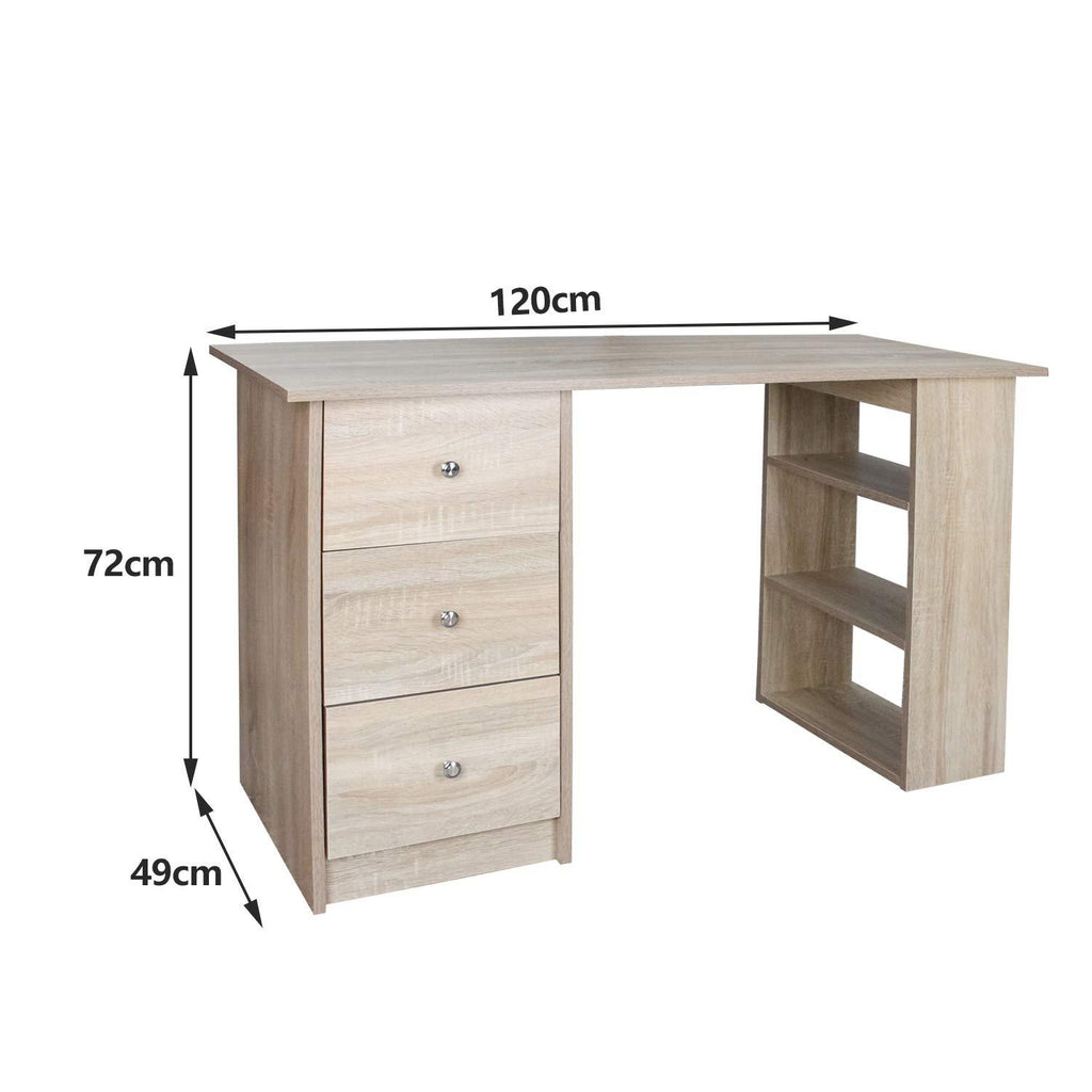 - Haupt-Schreibtisch und Beinfreiheit: 120 x 42 cm große Schreibtisch kann man Schreibwaren, Drucker, Displays, Dekorationen, Tischlampen usw. setzen. Unterhalb des Tisches ist es geräumig und Sie können Ihre Beine bequem ausstrecken. Drei Schubladenboxen und drei Stauraumebenen bieten ausreichend Stauraum für Bücher, Kleinigkeiten usw.