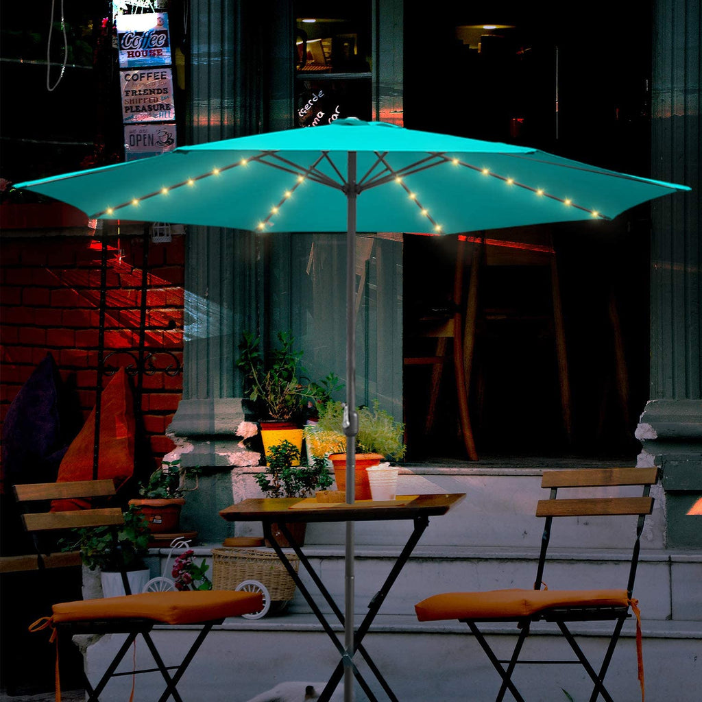 Die 36 LED Lampen sorgen mit ihrem stimmungsvollen Licht für ein angenehmes Ambiente. Strom liefert ein leistungsstarkes Solarpanel, das direkt oben am Schirm angebracht ist.Das Licht kann durch einen kleinen Schalter gesteuert werden.