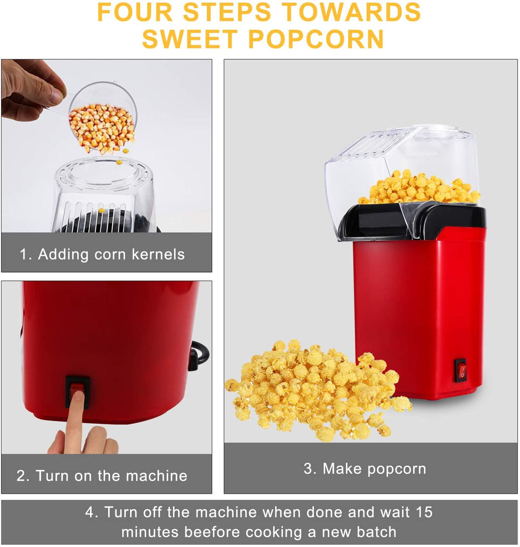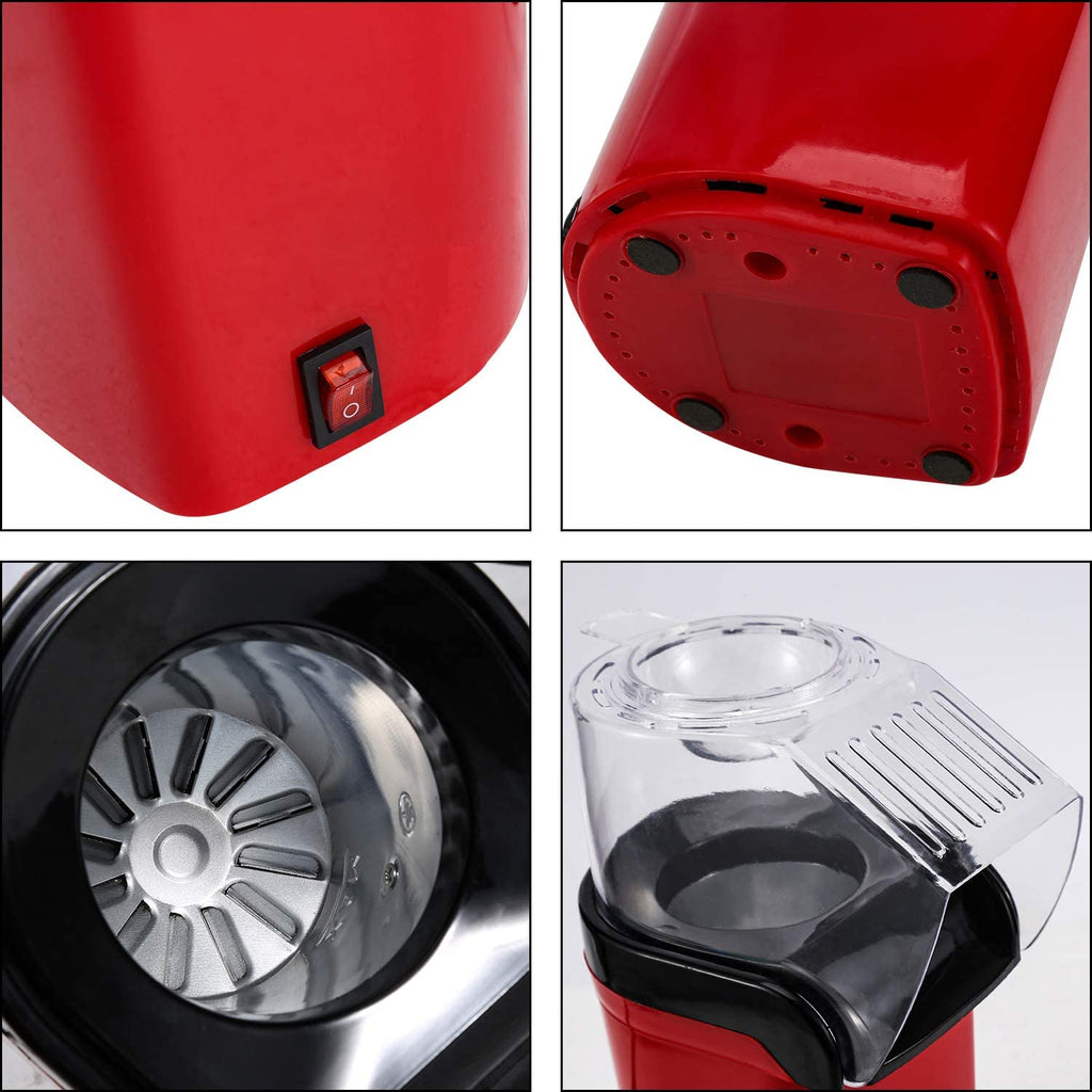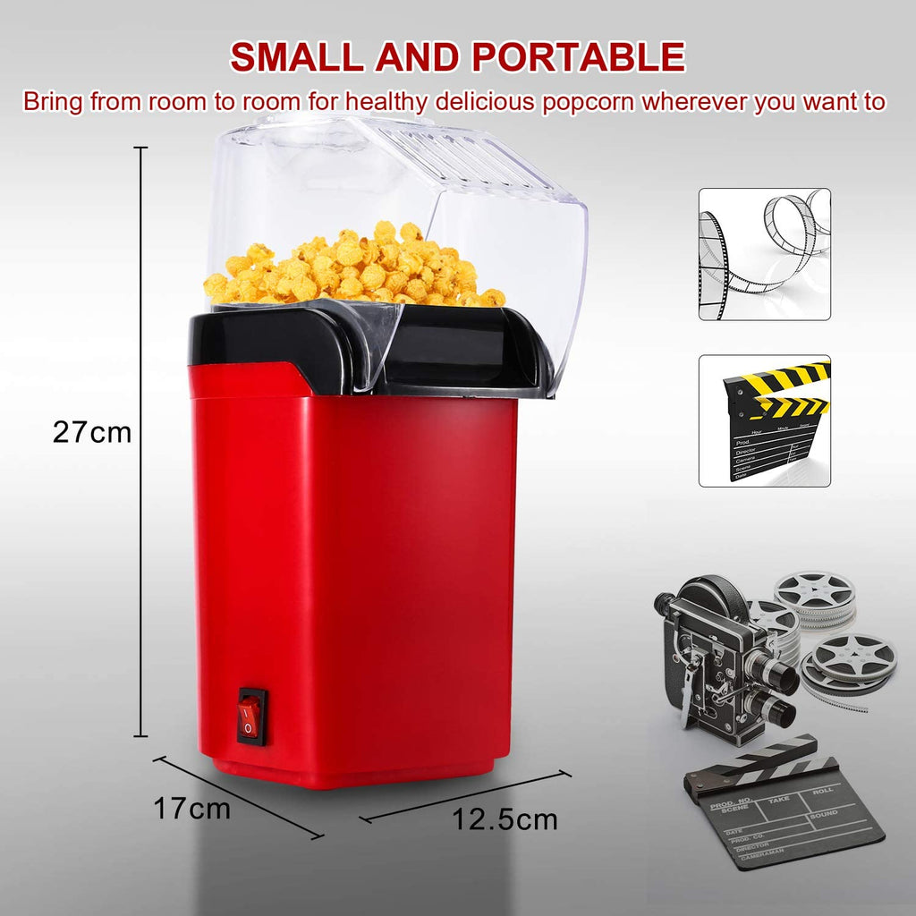 Wolketon Popcornmaschine 1200W Popcornmaschine für Zuhause,Retro Popcorn Maker Heissluft Fettfrei Ölfrei abnehmbare obere Abdeckung l Retro Rot