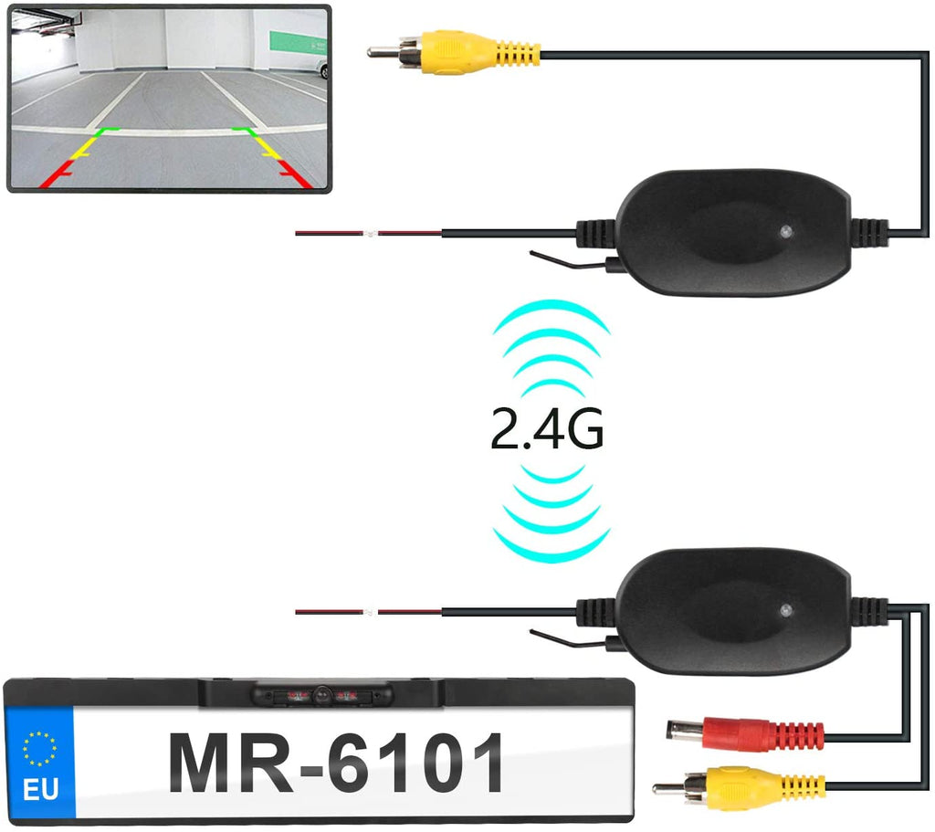 - Die Kamera kann über ein Videokabel angeschlossen werden. Das Stromkabel ist mit dem Rücklichtausgang des Fahrzeugs verbunden. Wenn das Fahrzeug rückwärts fährt, startet das Rückwärtsüberwachungssystem automatisch und die Situation hinter dem Fahrzeug ist deutlich zu erkennen.