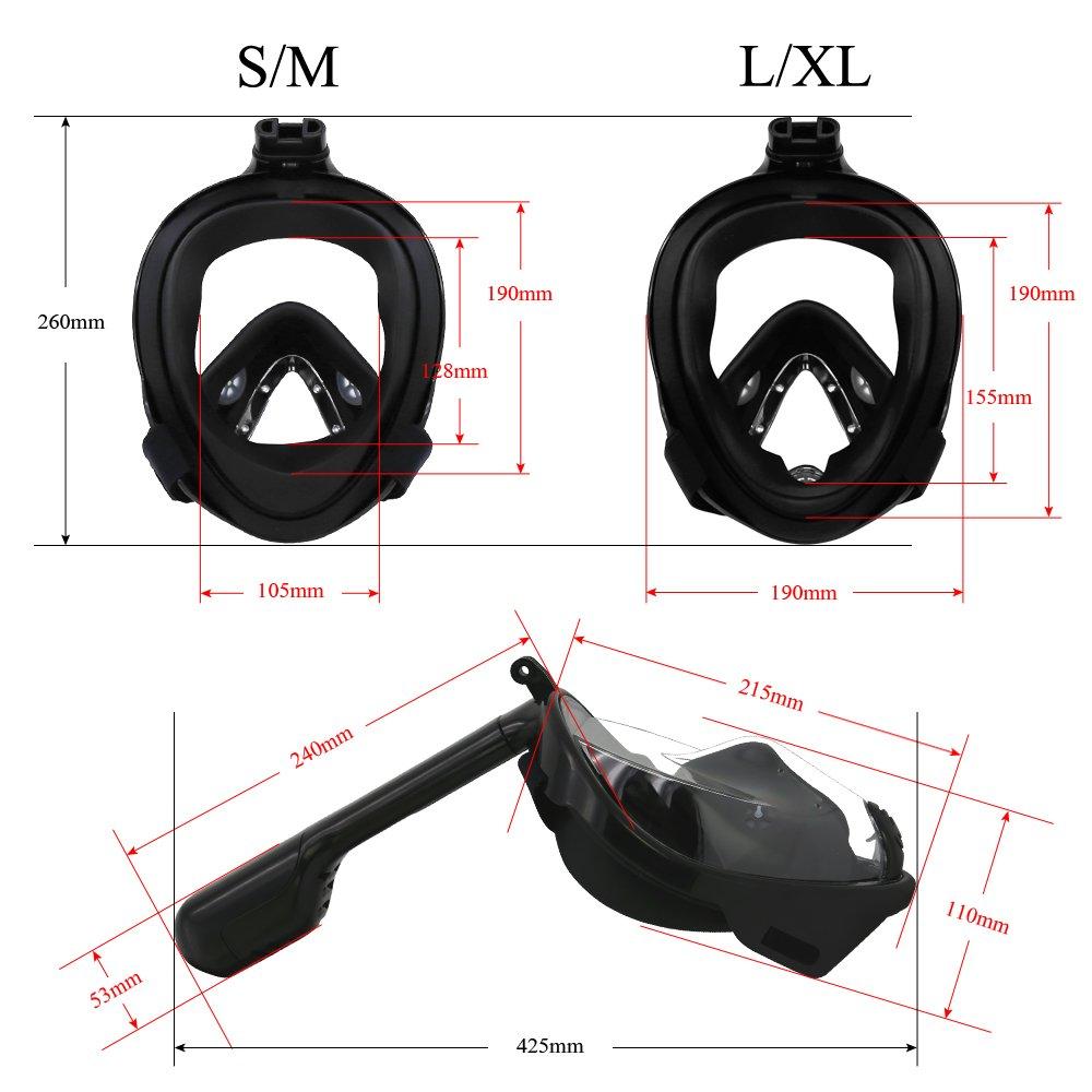 Wolketon Schnorchelmaske Schwarz Tauchmaske Größe L/XL